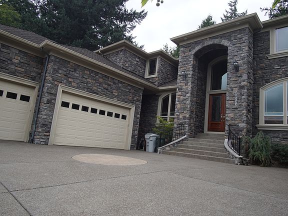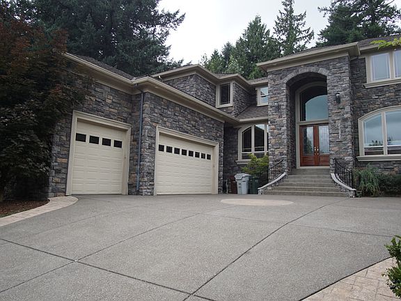 Poised at the end of a cul-de-sac this gorgeous home stands out w/ stone exterior, 20ft+ foyer, tile inlay and spiral staircase. 1st level features a sitting rm, dining w/ wet bar, office, and a great rm / kitchen w/ floor to ceiling windows. The gourmet kitchen is equipped with high end appliances including a dbl oven, and granite. The 2nd floor has 3 brms, a bonus/ movie rm, and a separate master wing. Surrounded by green space, a seasonal Mt. Hood view, privacy, and ample space to entertain.