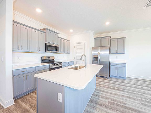 Brand new 4/2 in Fairhope Falls. As you enter this Jasmine plan, the foyer leads to the open concept living and kitchen area featuringgranite countertops, a deep, stainless, undermount sink, stainless appliances, a large pantry, and an island that overlooks the familyroom. The primary suite has a roomy bathroom, granite tops with undermount double bowl vanity, separate shower, and large walk-incloset. This split floor plan has the second, third and fourth bedrooms are at the front of the home while the primary is at the back of thehome offering privacy. Fully fenced backyard.