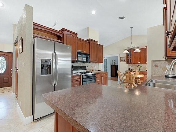 Welcome home to a freshly painted & renovated 3 Bed/ 2 Bath Home on 1.31 Acres at the end of a dead end street. Enjoy entertaining w/ the screen enclosed solar heated pool?(2017), a large patio & beautifully landscaped yard, w/ an extra wide concrete driveway. Other desirable features include a lovely kitchen w/ a Stainless Refrigerator, Gas Range, new wood cabinets as well as a movable Kitchen Island. The formal Dining Room features a built-in Buffet matching the kitchen cabinets for increased storage. Tile &/or solid surface flooring spans the the main living areas & bedrooms. Custom French Doors lead into the Master Bedroom Suite featuring his & hers closets w/ organizers, a large walk-in shower featuring double shower heads & his/ hers vanities.