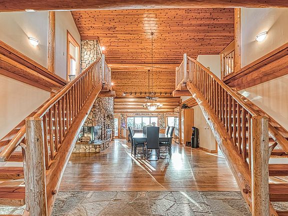 An extraordinary 40+/- ac ranch retreat where Canadian Blue Spruce log construction meets timeless craftsmanship and modern comfort. Tucked inside a private, gated community just 25 minutes from Clovis, this one-of-a-kind estate offers the rare opportunity to live on land without sacrificing luxury. The main residence spans over 4,200 sq. ft., featuring 5 spacious bedrooms and 4.5 baths, plus a detached ADU above the oversized 4-car garage perfect for multigenerational living or guest stays. Soaring wood-beamed ceilings, river rock fireplaces, and handcrafted details throughout evoke the warmth of a mountain lodge. Outdoors, a fully stocked fishing pond, fenced garden with raised beds, and covered livestock barn make this a true rancher's paradise. An inground spa and stone patio with a built-in outdoor kitchen and fire pit invite you to entertain under the stars. With panoramic views of Table Mountain and endless room to roam whether horseback riding, off-roading, or simply enjoying the sunset this property is ideal for hobby ranchers, outdoor enthusiasts, or anyone seeking a peaceful, self-sustaining lifestyle surrounded by natural beauty.