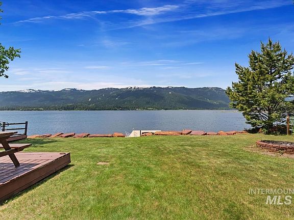 Welcome to your rare, deep water lakefront getaway! This charming, fully furnished 3-bedroom, 1-bath log cabin offers the perfect blend of rustic character and serene lakefront living. It boasts stunning water views, water access with 75 feet of lakefront, and the lakeside deck and flat slope lawn is a front row seat to the gorgeous sunsets. It also borders BLM land on one side of the property, making the property a private and peaceful oasis. It has a private dock, a rock sea wall, and is next to the boat launch—ideal for lakeside recreation and soaking in the views of Tamarack and West Mountain. The cabin is an open concept on the main floor, with a lofted bedroom and sitting area on the second floor. The bathroom is newly updated as well. The spacious garage is perfect to store a boat or a toy trailer, and provides a workbench for the tools. Whether you’re looking for a full-time home or a retreat in the mountains, this one-of-a-kind lakefront property delivers.