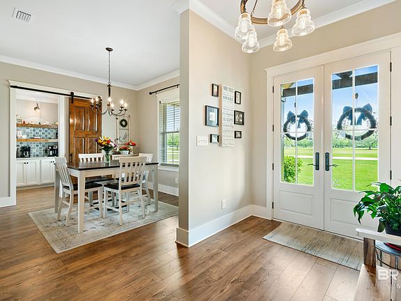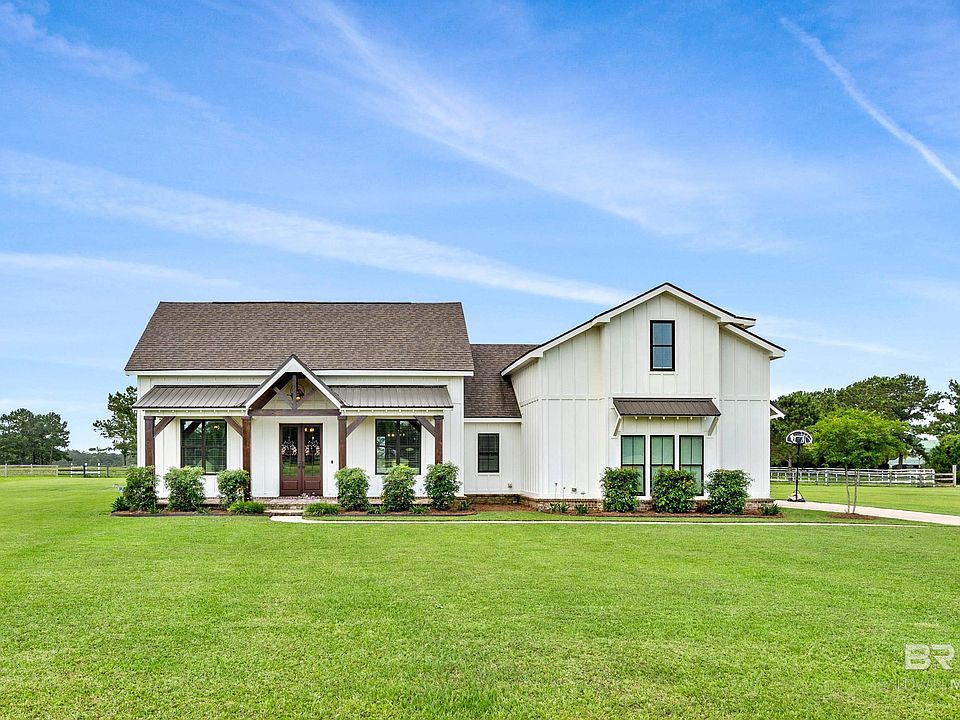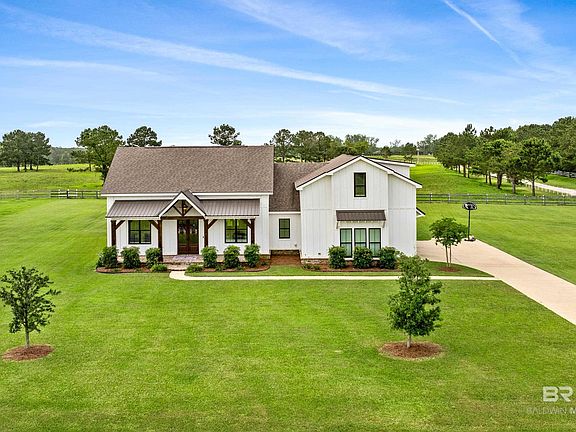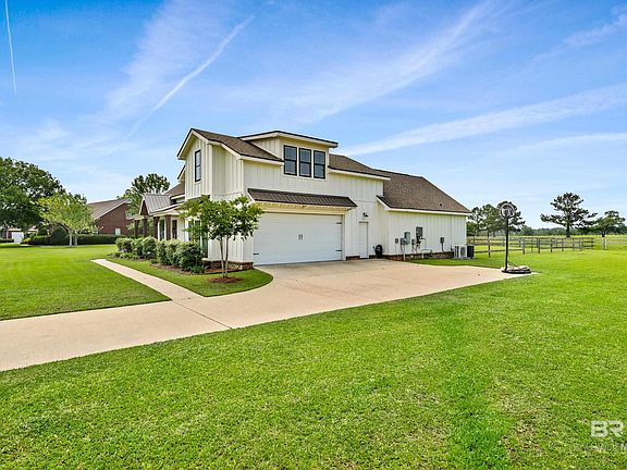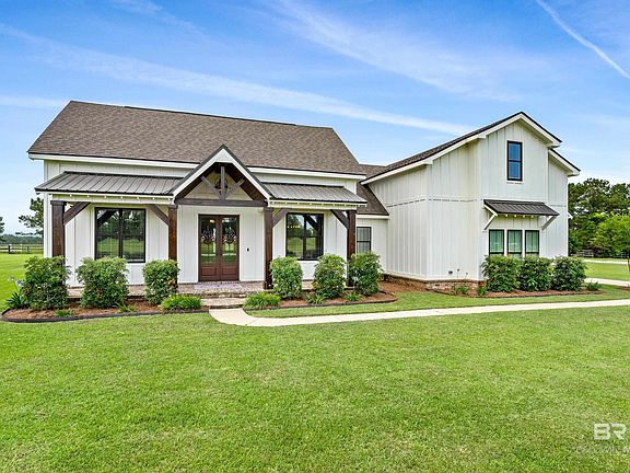 Beautiful modern farmhouse now available on 1.2 acres in the desirable Dominion Farms neighborhood in Fairhope. With farm land behind you and pecan trees to the front the views are endless. This 2810 sq ft home has 4 bedrooms, 2.5 baths with all the custom touches you would expect. The kitchen has a beautiful brick archway, concrete countertops, and a full butlers pantry with 8 ft custom wood barn doors. The family room features a beautiful fireplace complete with built-ins on either side and 8ft double sliding glass doors that extend your entertaining space onto the screened in back porch. The primary bedroom suite is a dream with a walk-in tile shower, separate vanity area and a HUGE walk-in closet. Two additional bedrooms on the main floor connected by a jack-n-jill bath with the same concrete countertops. Upstairs you will find an over-sized bedroom perfect for guests or a home office. This area is also also plumbed if you wish to add an upstairs bath in the future. Weeks Bay is just a mile aways as well as Pelican Point and Mullet Pointe so your boating options are endless. This home has so much to offer so call your favorite realtor for a personal tour today! Buyer to verify all information during due diligence.