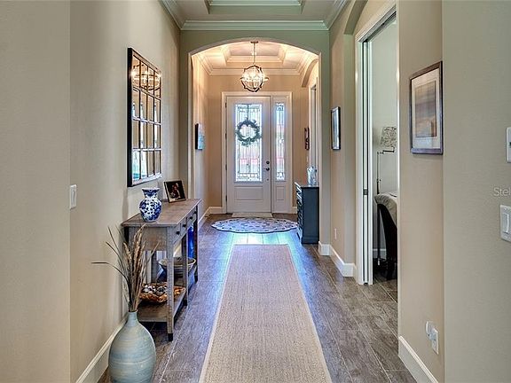 This beautiful home awaits you in the luxurious resort community of Esplanade. With upgrades galore, this well-appointed home offers an entertainment area which flows outdoors to your own putting green. Enjoy the wide-open views of the 10th tee boxes and fairway. This three-bedroom plus office home exceeds expectation with exceptional privacy and a spacious open floor plan with coastal design. Tray ceilings, crown molding, and wood-like tile tie together a symphony of thoughtful spaces that connect perfectly for everyday living and entertaining. Enjoy abundant natural light and tranquil views of manicured greenery from the central living room. Sharing this space, a dining area and a kitchen with cafe' upgraded stainless steel appliances (including natural gas stove), large island with breakfast bar and light stone surfaces making preparing meals a delight. Retreat to the master suite, tucked away for self-indulgence and featuring a seating area with bay windows that looks out to the lanai and striking en-suite marble bath with oversized shower and dual vanity. Two additional guest suites are generous in size and offer a shower/tub combination. For any remote work or e-learning, a bright office towards the front of the home is divine for quite study. No Florida lifestyle would be complete without blended indoor-outdoor living and this home has it with an impeccable screened lanai for play and relaxation. A personal putting green will help you work on your short game between rounds with friends and colleagues and will be the perfect activity when entertaining, while a summer kitchen and covered seating area allow for dinning alfresco amid cool evening breezes. Esplanade is known for its impressive array of amenities that cater to every walk of life, including two resort-style pools, pickleball and tennis courts, billiard and game rooms, wellness center, nail salon, walking trails and more. Located minutes from I-75, Main Street Lakewood Ranch and A-rated schools. A home and community that make every day a day in paradise.