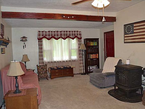 Country setting with 2.2 acres, mature trees, 3 car detached garage plus a 1280 sq ft metal outbuilding! This charming home offers three bedrooms, one bath, living room, eat-in kitchen with white cabinetry and more! Outdoor living space with a patio overlooking the back yard. Updated electric panel. Corn stove in living room. Reverse osmosis water filtration. Call today!