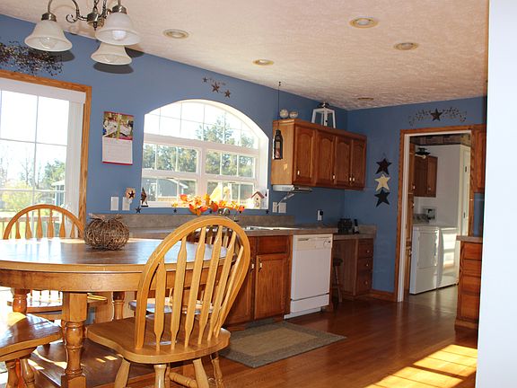 3 bedroom 2 bath home on 2 acres. Hardwood floors, fire place, covered porch, large back yard deck, basement and finished pole barn. 4 miles from town 08/02/16