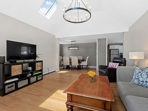 This sun drenched 3 bedroom condominium is set back on the carriage road off of Boylston with a private backyard. Enjoy the screened in Gazebo and wonderful deck area for outdoor entertaining. Inside features gleaming hardwood floors, spacious kitchen with island and plenty of counter space, open floor plan living room with vaulted ceilings, skylights, and 3 large windows leads to entertainment size dining room area. Three nice size bedrooms. Attic has potential for expansion. Laundry in unit. Back staircase leads to basement which is perfect for storage and lovely back yard. One Car detached garage and 3 deeded parking spaces. .6 miles to the green line's Elliot MBTA station and Hemlock Gorge sanctuary. .2 miles to Historic Echo Bridge. Great commuter location and close to Route 128, Massachusetts Turnpike, and Route 9.