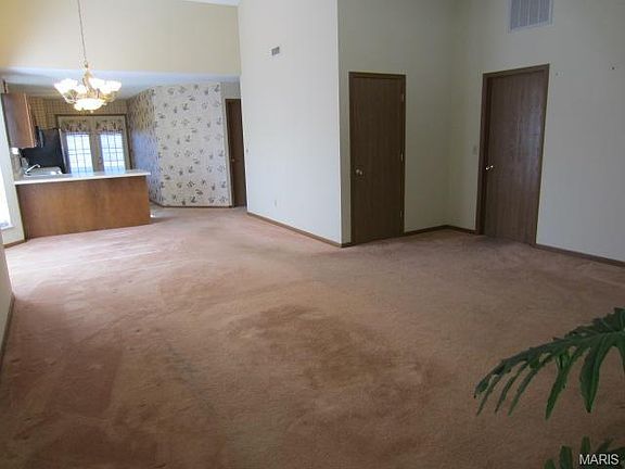 CHECK OUT THE PRICE! THIS MAY BE THE DEAL OF THE DECADE! Great villa living space with an attached garage located just minutes from MO-364. This big, open floor plan has much to offer, a woodburning fireplace in the great room, spacious dining area, big breakfast bar and vaulted ceiling plus a great working kitchen. French doors from the kitchen to a patio enhance the comfortable lifestyle. The master bedroom is a great size and has a walk-in closet. The second bedroom has a good closet and also excellent space. The large bathroom has double sinks, separate tub and shower and a door to the master bedroom as well as to the hall. Again, great use of space. The utility/laundry room is convenient as well as the attached garage. Note all the shelving in the garage plus room for the car. The seller wants to sell "as is", as the price reflects. The villa is in good condition just ready for a new owner!