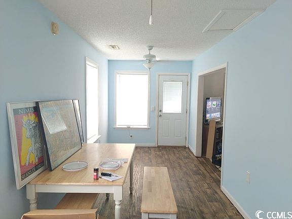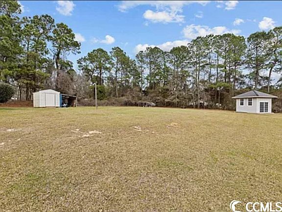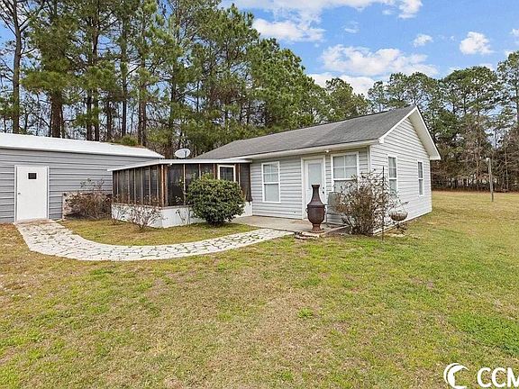 Looking to downsize but still maintain your privacy? This is a unique private property that used to be the guest house for a larger property. It boasts over 1 acre and 3 outbuildings consisting of a detached metal garage measuring 20 x 17 with a 10 x 8 high roll up door. The other 2 outbuildings are a bunk house that currently has a jacuzzi inside overlooking the pond and a storage shed. The separate dining area is an incredible 23 feet long as you enter the front door. A separate living area and enclosed bedroom allow you to have guests if needed. New roof, new HVAC and termite bond in place. Enjoy the evenings sitting outside on your large screened porch. No HOA means park your RV or boat on your property too. Enjoy the trees that surround the country living lifestyle but quick access to Hwy 22 and Hwy 501 means it is close to shopping, dining, and the beach. Realtor is a relative of Seller. Measurements are approximate and buyer is responsible for verification.