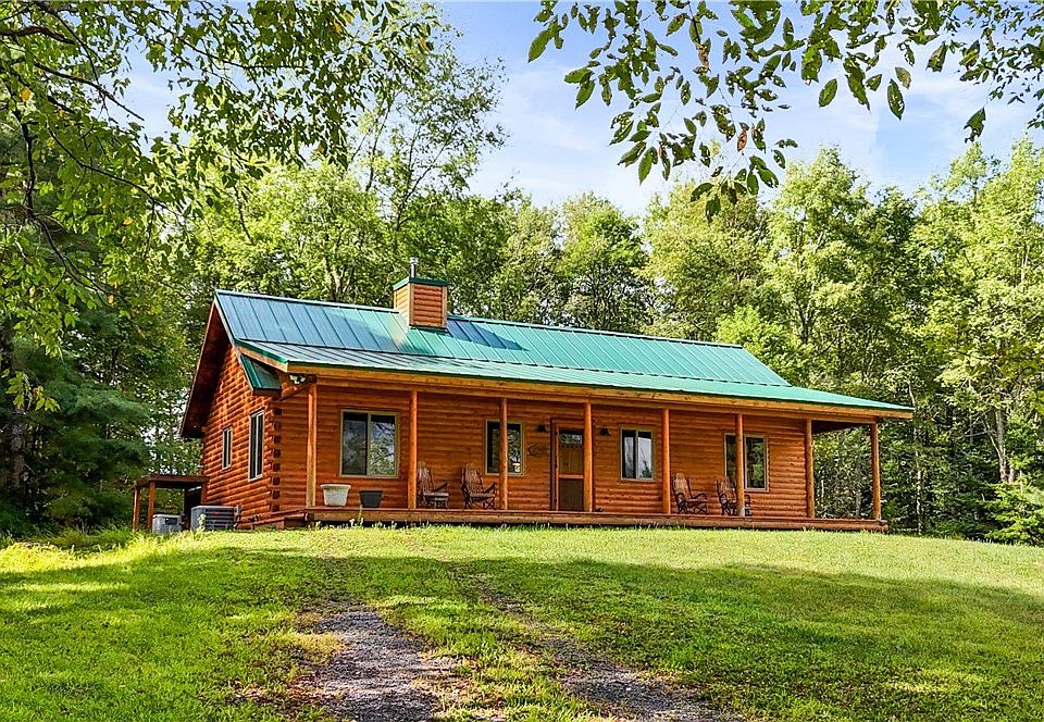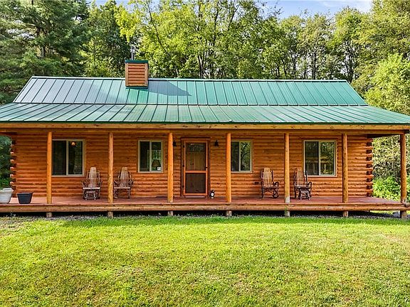 Hunters paradise or wildlife enthusiasts take note! 100 private acres with a beautiful log, ranch home. Custom kitchen cabinets, custom kitchen lighting and granite countertops. Two bedrooms, each bedroom is en-suite. Large covered porch across the front of this home and a deck on the rear. Home has a full, poured basement that is drive-in for ATV;s or sleds from the side of the home. There is a large pole barn for cold storage with a 16' door. This property is very close to Hinckley Reservoir and boat launch. Poland School District. This is a one of a kind find.