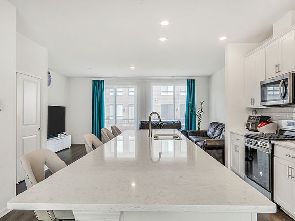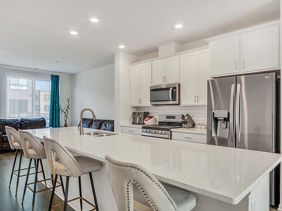 Your search ends here! This stunning townhome built in 2022 is sure to impress with its breathtaking views, modern design, and smart-home features. The bright, open-concept layout includes 3 bedrooms, 2.5 baths, a spacious 2-car garage, and a finished lower-level bonus room-perfect for a home office, gym, or guest suite. Step inside to a beautifully designed main level featuring a generous living room for relaxing or entertaining, a spacious dining area, and a luxurious kitchen that stands out with 42" designer cabinets with crown molding, soft-close drawers, hardware accents, quartz countertops, a stylish tile backsplash, stainless steel appliances, a microwave that vents to the exterior, ample storage, and a large island-ideal for gatherings with family and friends. The adjacent living room opens to a private balcony for easy indoor-outdoor living. Upstairs, the large primary suite offers a walk-in closet and a private bath with dual sinks, ceramic tile flooring, and a stand-up shower. Two additional bedrooms are bright and roomy, with large windows filling the space with natural light. You'll also appreciate the convenient upstairs laundry for everyday ease. Enjoy a low-maintenance, professionally landscaped setting and a prime location within the neighborhood-featuring a peaceful, park-like view in front-while being just minutes from highways, shopping, restaurants, and more. Schedule your showing today!