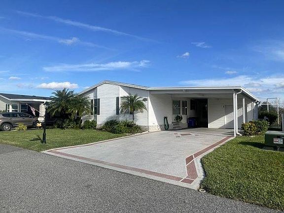 2 Bedrooms | 2 Bathrooms | 1323 sq ft | $125,000 Lot#355 at Las Brisas Lane Charming Turnkey Home with Golf Course View This beautifully updated 2-bedroom, 2-bath home has everything you need for easy Florida living - and comes with 3 months of free lot rent from a motivated seller! The split floor plan is perfect for hosting guests while maintaining privacy. The open-concept living area is bright, inviting, and fully furnished, with easy-to-maintain laminate and tile flooring throughout. The kitchen combines style and functionality, featuring ample cabinetry with pull-out organizers, a pantry with sliding shelves and plenty of counter space. Enjoy casual meals at the counter bar with stools or relax in the cozy breakfast nook with stunning golf course views and local wildlife sightings.The primary suite, just off the living area, boasts a spacious walk-in closet and a double sink ensuite bath. The guest bedroom and bath are located on the opposite side of the home for added comfort and privacy. An 11′ x 14′ lanai with vinyl windows adds extra year-round living space, ideal for morning coffee or sunsets. Outside, the side patio overlooks the golf course and features an outdoor grill area, perfect for entertaining or unwinding after a round of golf. A Golf cart garage with workbench, utility sink, and storage plus Golf cart is included. Has a laundry room off the kitchen. Irrigation system is included. Features a Deco driveway. With a motivated seller and 3 months of free lot rent, this home is an incredible value! Receive One FREE Year of Golf when you purchase this home! Contact us today to see it in person and make it yours before it's gone!