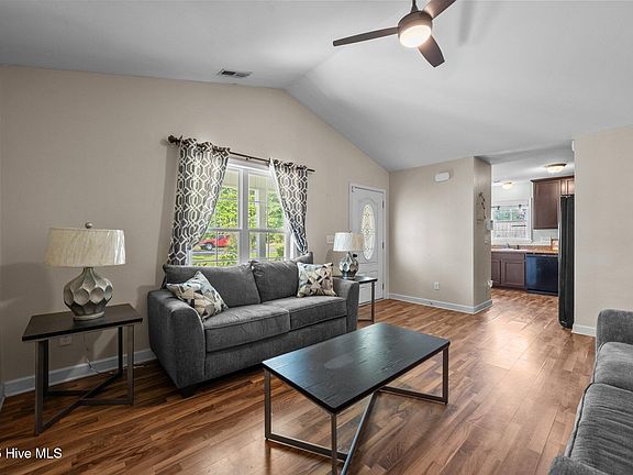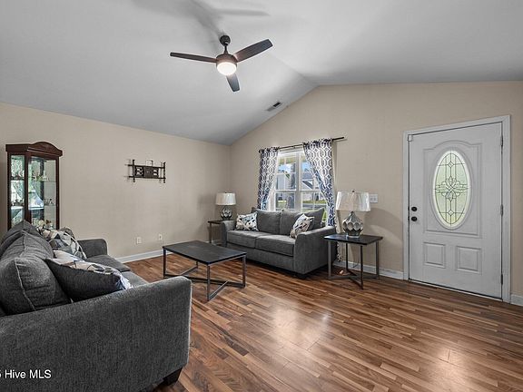 Have you been searching for a home where you'll have space for a big backyard, a workshop, and a garden? You've found homes that are almost perfect and then realize there's very little outdoor space that comes with it. The disappointment is over because 1276 Pickett Rd. has what you've been searching for and is priced right! With almost an acre of land, you can ask the county if the backyard can be expanded to accommodate your heart's desires. You'll be minutes from New River Air Station, Camp Lejeune, shopping, and restaurants. You'll be cozy in this three-bedroom, two-bath home. The primary bedroom has a spacious walk-in closet, and an ensuite with a double vanity, shower/tub combo, linen closet, and ceramic tile floors in both baths. Enjoy breakfast or coffee each morning while soaking up the natural sunlight from your beautiful dining area window. No city taxes and best of all no HOA! You'll feel confident with the purchase of this home as the seller is offering $3,500 to help cover the replacement of the laminate flooring, the casing around the back door, eve trim on front of home, and the septic control panel (Coastal Septic Pros recently recommended the panel be replaced although the system is still working). A very small corner in the rear of the property is considered ''Designated Wetlands''. (Ask your agent to see the plot map.) Be sure to check out the 3-D virtual tour and floor plan. This is a desirable location and price range. Don't miss your opportunity to make this your new home! Call your Buyer's Agent and set up your showing today.