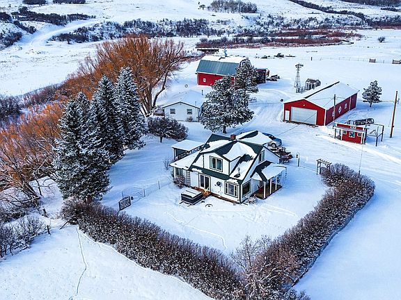 With unimpeded views of theBig Snowy Mountains to the south and an historic buffalo jump to the west, as well asdirect access to 600' of the East Fork of Spring Creek,a more idyllic location for your forever home has never existed. This 5.118+/- acre property is located 12 miles from Lewistown,just south of the East Fork Reservoir and is move-in readywith 2 residences and multiple well maintained outbuildings. The primary residence on the property is a one bedroom, two bath (one full and one half) two story, 1,581 sq.ft. home built in 1925 with original rock wall basement. This home has had major remodeling and upgrades over the past few years including ametal roof in 2020, CANXEL masonite siding, energy efficient windows, a energy efficient forced air (propane fired) furnace in 2011, new 50 gallon electric water heater in 2024, and a totally fenced yard. The home features a modern kitchen with twin electric ovens and a propane fueled kitchen range. A well thought out design and color scheme is evident and thehome is in immaculate condition. A 4 person hot tubpurchased by the owners in 2023 is supremely located to take in mountain views while surrounded by the mature lilac hedge in the summer months. Supplemental heat for the home is supplied by a free standing propane stove in the main floor living area. All appliances in both residences are included in the sale of the property. This residence is wired to accept power inemergency from agenerator. The second residence, built in 1981, is a two-bedroom, one bath, 864 sq,ft. guest cottage that has also served as an Air BB in recent years, generating from $10,000 to $12,000 in additional cash flow depending on the year and scheduled family/friend visits. The open concept kitchen, dining area and living room features an all-electric kitchen (oven/range, refrigerator) and a free-standing propane stove which supplies quality and quiet heat to the open-concept area. The bedrooms are heated by radiant electric, oil-filled baseboard heaters which are quiet and efficient. The water heater and pressure tank for the home are located in the crawl space. The home also features a deck which overlooks the back yard area and is mere feet from East Fork Spring Creek. One can take just a few steps and fish for trout right out the back door. The sale will include many of the home furnishings in both residences with the exception of a few items that have been designed and constructed by the sellers. Outbuildings Also on the property is one 1908 standard 28x46 barn with a 24x 46 open end, 14 high, lean-to on the north side. Barn is wired, with original horse stalls that have wooden floors and hay mangers. Loft has the original hay grapple fork, and access doors with historic track. A deck has been added to the west end of the loft; a perfect evening spot overlooking thecreek. A 2005, 30 x 48, pole frame building with concrete floor (with tubing for in-floor heat; needs the boiler)is fully wired with a 12 ceiling. Includes two separate, enclosed workshop rooms that are wired and heated, currently used as a workshop and craft/office space.On the north end of this shop/garage/workshop building there is a 2009 15 x 30 pole frame four-sided lean-to with a 10 x 10 overhead door that serves as additional enclosed garage/storage space. A wired poultry house easily accommodates about 10 laying hens. House includes laying boxes, roosts and perches, entry area for feed and supply storage and access to outdoor roaming/feeding area. A 10 x 12 greenhouseis wired (110/220) and includes thermostat controlled ventilation/heat/air movement and necessary benches for optimum use of floor and raised space. From the county road to the property, there is a permanent 30 access easement. The property is on a school bus route for Lewistown Public Schools. Two (2) water rights are included it the sale; one for the 60, 20 gpm well that serves both residences plus outdoor hydrants. To comply with the requirements for the AirBB, well is tested annually. Test results have always been acceptable for BB standards. The second water right is for irrigation and livestock use of water flowing in the East Fork of Spring Creek. Two older wells exist on the property; one is a hand-dug well in the basement of the primary residence. The other is non-functional in the side yard of the primary residence but could be made useable again, if needed, with servicing from a licensed well driller/maintenance service. Both the primary residence and guest house have R/O systems for drinking and cooking water. Landscaping is well planned and maintained with mature trees. Average annual utilities (electricity and propane) are about $4,560; taxes are about $2,738 per year. Property is served by high speed (169 Mbps/sec)fiber optic cable (Midrivers Coop) which includes land line capability; has independent routers for each residence; Dish Network for TV. Propane tank is leased; current lease rate is $60/year but the rate is expected to increase in 2024. The 1,000 gallon concrete septic tank serves both the primary residence and guest house. The tank is pumped every 3 years on a regular schedule. The hay field produces 7-10 tons of grass/alfalfa hay annually.