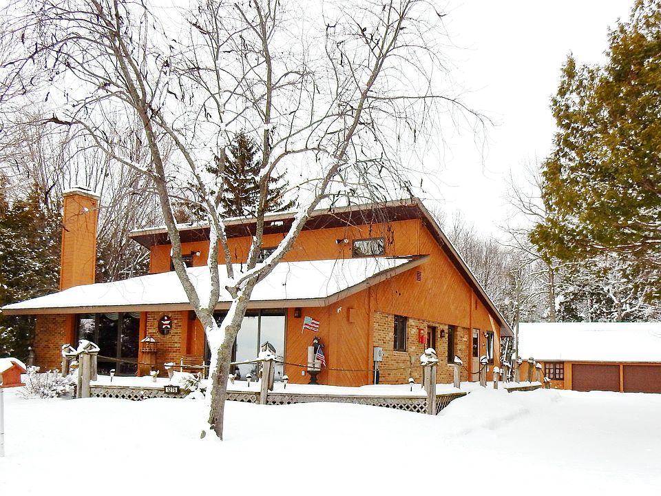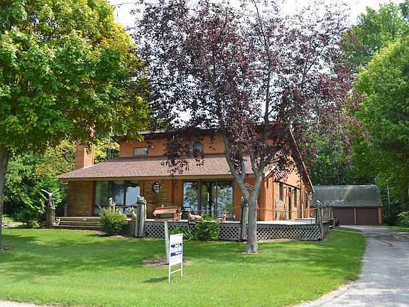 On the Bay in southern Door County. 120` Bay frontage. 2.25 acres. Beach. Boat ramp. 2 older docks. 3 br 1.5 ba. House has open concept design & wall of windows overlooking the Bay. Wood burning FP, 1st fl laundry, office, mudrm, AC, basement. All appliances plus washer dryer are incl. Large deck. Newer roof. 3 stall detached garage. 57x21 metal shed/garage. Easy drive to Green Bay & Sturgeon Bay