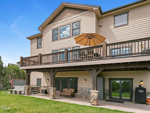 Stunning views from the top of Sky Legend. Residence features five bedrooms plus a large office, hardwood floors, ample storage space, and zoned AC with humidification system. Lutron lighting is included. A huge master suite has a two-sided fireplace, with breathtaking views. Beautiful open-concept chef's kitchen includes stainless steel appliances, and granite countertops. Back yard adjoins a transitional wooded zone on the 14th fairway. Hot tub and fire pit are included. Finished lower level boasts an extravagant custom bar and amazing recreation room. Total living area with three garage spaces is 5900 square feet. Close to schools and all amenities in Gypsum including pool, golf course and recreation center.