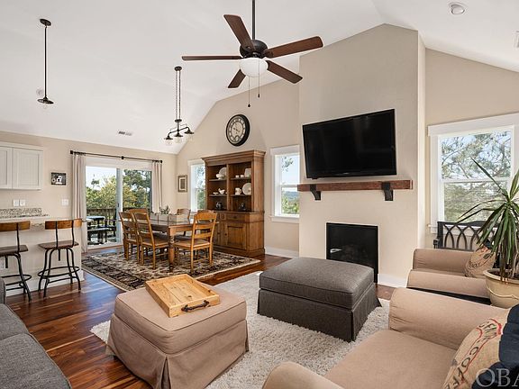 Welcome to this spectacular home in the highly sought-after Corolla community of Villages at Ocean Hill. This 4 bed, 3.5-bath home showcases some impressive first-class upgrades - interior plantation shutters, exterior Bahama shutters, an underground 300-lb fuel tank, gas fireplace, gas stovetop/oven and tankless water heater - ensuring it's turnkey and prepared to entertain you and your guests! You won't have to lift a finger. Exotic and beautiful acacia (engineered hardwood) floors flow cohesively throughout the living spaces. The modern kitchen boasts durable granite countertops, a convenient garbage disposal, pantry, and stainless appliances. There's also a large laundry/sewing room with a full-sized washer and dryer. The property is secured by an ADT system and RING doorbell. Additional attic insulation, exterior gutters and a portable whole-house generator with electrical hookups are definite upgrades. The original owners have truly cared for every inch of this pristine property. It presents like a new home. The outdoor amenities are noteworthy, too, including a saltwater pool and upgraded deck area that creates a relaxing oasis for those long summer days. An outdoor shower and changing area is easily accessible and handy for pool and ocean swimmers. The firepit is perfect for gathering around on cool evenings to enjoy the salty breezes and soothing sounds of the ocean waves. There's also a covered outdoor bar, bar stools, a yachtbox for storage and deck carpeting. If you can break away from this house's appeal, you can easily access the community's plentiful amenties - a health/fitness center, both oceanfront and lakeside pools, tennis courts, pickleball courts, basketball courts and a playground! This westside cul-de-sac location is closer to the oceanfront access than many oceanside homes! Just a quick stroll with crosswalk and path. There's not many homes that can match this one, so don't miss out on the opportunity to make it your own!