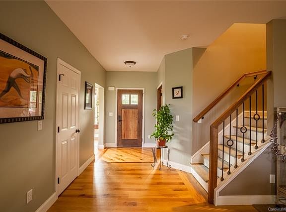 Your own gorgeous private land, long range views, gardens, wide creek & fabulous like new construction awaits! This open plan home, carefully sited on the ridge, captures broad year-round mountain views. Trails through the woods along a spring, open and wooded pasture surround; ideal to fence for horses, homestead animals or gardens. 9' ceilings & solid hardwoods on main level, with tile in kitchen, laundry & baths. The great room opens to a screened porch & wraparound deck overlooking the breathtaking view. Large master on the main level features a walk-in shower and large walk-in closet. Stunning custom front door, walnut stair railing & stone surround efficient wood burning fireplace, beautifully display the attention to detail. There's room for every need with an office, a fitness room, expansive family/rec room with full bath and bonus workshop. Straddles the County line with Madison taxes, but close to Buncombe fun! Search "1276 Teague Rd" on YouTube for amazing drone video!