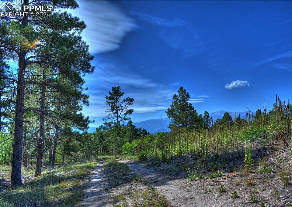 Great location with Spectacular Pikes Peak and Full Front Range unobstructed Views. This Nicely timbered, Very Rare 5 acre property featuring breathtaking picturesque views of Pikes Peak with a serene atmosphere offering unparalleled privacy and seclusion nestled as a Flag Lot. Ready to build your dream home with a private well. Easy access to everything from Shopping, to Entertainment, to Shopping, to Recreation, Schools and so much more. Very quick access to I-25 and an easy drive to downtown. Make this one of a kind Custom Building Lot the site of your New Home.