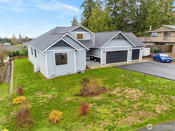 Nestled on a quiet cul-de-sac near the Skagit Golf and Country Club, this picture-perfect 2023-built home is designed with you in mind. With 4-bedrooms, 2.25 baths, and a spacious 3-car garage, blending style, comfort, and modern convenience. The eat-in kitchen is the heart of the home, that flows to the living space, backlit by valley & mountain views. 3-bedrooms.(1-oversized) offer ample space with blackout blinds for day sleepers while the primary serves as a private sanctuary with its spa-inspired ensuite and generous walk-in closet. Step onto the oversized deck with your morning cup as you soak in the beauty of the surrounding landscape. Even your furry companions are thoughtfully considered with a dedicated covered run off the deck.