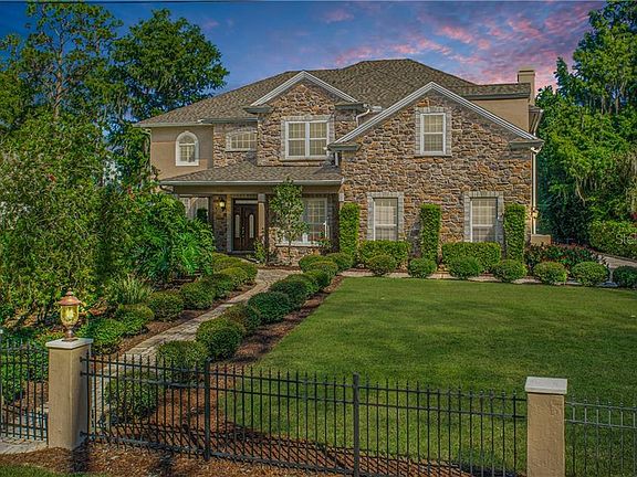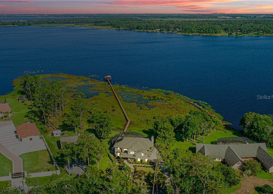 One or more photo(s) has been virtually staged. 3D Virtual Tour Here - bit.ly/12760RobertsIslandRdVirtualTour - Luxury LAKEFRONT Living in a lush tropical setting. Check out the views you have from this Gorgeous waterfront home boasting tons of custom upgrades and architectural details. Located in a gated, very rural area of Orlando with a lot of wildlife, the home is serene and tranquil, and best of all, no HOA! Drive through the electric gated entrance, and you see the meticulously manicured lawn. The landscaping wows with a beautiful hedge that lines the paver walkway leading to the stunning two-story home with a stone facade. The perfect multi-generational home features 6 bedrooms, 4 and 1 half baths with a 3-car garage directly on Lake Mary Jane. The two-story foyer features a dramatic wood staircase with wrought iron railing. Gleaming wood flooring leads you into the formal and informal living that includes the formal dining room and living room with never-ending water views. The kitchen feels bright and cozy with a spectacular pool and lake views, 42" cabinets, granite counters, stainless steel appliances, island and breakfast bar and is open to the comfortable, sunlit family room with built-in shelving and a stone fireplace. Also, a guest suite with a full bath for when your unexpected guests show up. Head upstairs, and the quality continues in every room. Spacious Master suite with tray ceiling, walk-in closet, and custom French sliding doors that open to the balcony and overlooks the pool and lake views - imagine watching the sunset every night while relaxing in bed! Boasting a spa-like bath that is sure to please. Featuring a tiled Super Shower with multiple heads, porcelain tile flooring, and double sink vanities with makeup station. If this wasn't enough, there is a connecting flex room that can be utilized as a nursery, sitting room, home office, or gym. The 6th bedroom converted into a bonus/media room will provide plenty of family fun with a built-in and fridge. Three additional bedrooms and two full bathrooms provide room for family, friends, and guests. The home is an entertainer's dream and is waiting just for you. Panoramic lake views from every room with picturesque windows perfectly positioned on every wall. Crown molding, arched entryways, custom wood cabinetry, built-ins, upgraded lighting and fixtures, and so much more. The hardest part of living here is to decide if you will spend your time relaxing in or out! The outside is just as amazing as the inside with a two-story screened heated pool with overflow fountain, large deck to lay out in the sun, and covered lanai with a barbeque, all overlooking the sparkling lake. The yard is fenced and has so many possibilities - bring your trampolines, volleyball net, water slides, anything your heart desires. When you're ready for lake fun head down via the expansive walkway and you reach the covered dock with an electric boat lift and jet ski launch. The water is mesmerizing and takes your breath away. Bring all your water toys and play all year round in the sparkling waters. Experience the preserved, natural beauty of old Florida and own a piece of heaven. Minutes to the Lake Nona area, close to OIA and the beaches. Lake Mary Jane is connected to Lake Hart via the Moss Park canal. These lakes are truly some of the most beautiful bodies of water in Orlando. One year warranty provided. Do not wait any longer to see this beauty and make your dreams come true.