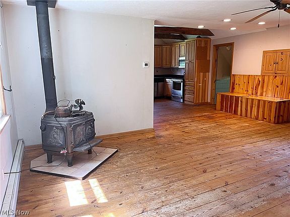 Amazing opportunity on 4 acres in the Berkshire School District. Once a Ranch with 2 bedrooms and 1 full bath this home now has bonus spaces of an upper-level bedroom and full bath along with a lower-level family room with a stone fireplace/wood burner insert. First-level laundry with washer and dryer remaining. Remodeled kitchen with all appliances has an open concept into the Dining Room and the Living Room with a wood burner. Furnace approx. 5 years old, Pressure Tank approx. 6 years old. Additional insulation has been added throughout. Electrical, windows, and floors have been updated since 2004. The House roof is both asphalt shingles and Metal, which was put on in 2012. Large 3 bay detached garage/barn area with built-in work areas. Additional storage shed for extras including wood storage. As you come up the driveway a small creek is on either side as well as areas used for a garden area, compost area, and bird sanctuary area. Nature surrounds this property where you can relax and enjoy. 1-year Home Warranty included.