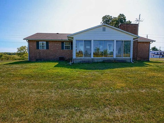 One of the cutest houses on US 62 when driving to and from WCH or Columbus. This great ranch style brick home has awesome bones with a little bit of vintage added to the mix. Sitting on an acre in a lovely country setting, this home has great possibilities. A cozy family room opens into the kitchen area with a beautiful fireplace or this space could be used as a ginormous kitchen for family gatherings. Three bedrooms and two full bathrooms. A fantastic all-season room for relaxing and watching sunsets. Full basement and two-car attached garage. An extremely large yard for outdoor fun. Detached two-car garage is NOT part of this sale, it not being sold with this house. You do not want to miss one, this is a great house in a great location!!
