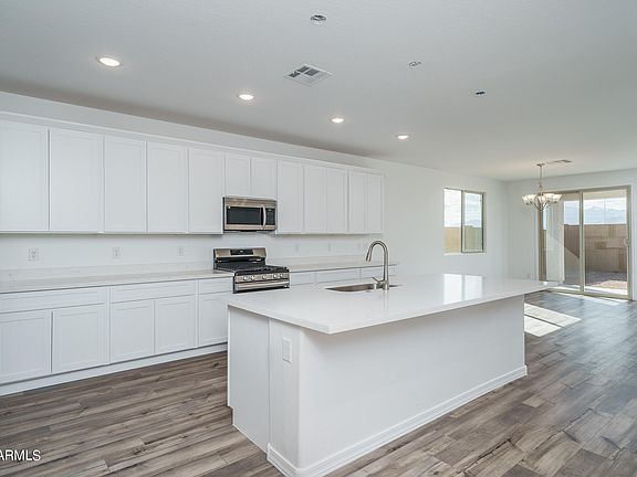 Premium Luxury Vinyl Flooring, Upgraded Carpet in bedrooms & loft, 8' Interior Doors and Gas Drop-in Backyard. With its impressive square footage and thoughtful layout, this residence provides an ideal setting for both family living and entertaining guests. Don't miss the opportunity to make this impeccable home your own and experience the epitome of modern luxury living! N/S facing lot with views of the Estrella Mountains!