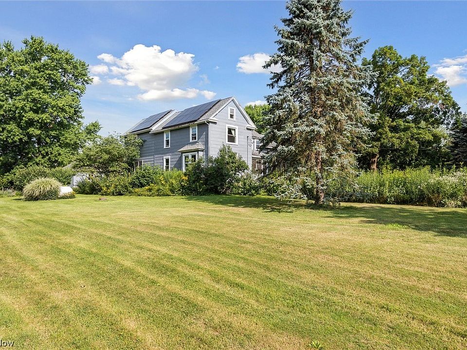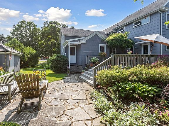 Located in a peaceful rural setting, this comfortable and expansive 19th century farmhouse is move-in ready! In great condition, loved and well-maintained over decades, it has been remodeled and updated with modern conveniences, while maintaining its original charm and character. An entry drive leads to a central courtyard created by out-buildings that give it the feel of a homestead. The south-facing bright family room has a separate study/office area with floor-to-ceiling bookcases for your home-office needs. The open kitchen/dining areas create a central hub for family life and activities. The south-facing formal living room/parlor is lovely with its original wood molding, beautiful hardwood floors, and window built-ins. It also doubles as a guest bedroom with easy access to the first-floor remodeled bath. There are three bedrooms upstairs: the largest is the primary bedroom which was expanded significantly (2015) to create a beautiful room with vaulted ceilings, an en-suite bath, and windows overlooking the surrounding farms, gardens, and western sunsets. The renovated modern kitchen (2021) includes a large farmhouse sink, soapstone counters, and high quality appliances. An original pantry and areas of basement offer ample storage. Other desirable interior features include replacement Anderson or Provia windows throughout the house, upgraded insulation, and updated electrical panel and wiring throughout. 30+ year shingles are present in both roof sections of the home (2003 and 2011), and solar panels (2017) provide significant energy cost savings! Outdoor features include numerous great entertaining spaces for gatherings, a newer 2-car garage and multi-purpose workshop (2021), a garden shed (the original 'milk shed' of the farmstead), a large wood deck adorned with beautiful flowering vines, a sandstone patio, and established vegetable and flowering perennial beds set amidst mature trees for year-round beauty - schedule your virtual or in-person tour today!