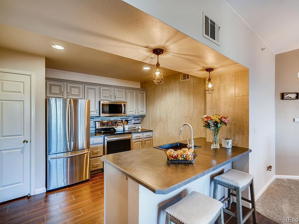 Updated 2 bedroom condo in Parker has it all! Kitchen is to die for, tile floors throughout kitchen - spilling into family room, updated light fixtures, a gorgeous gas fireplace that serves as the central focal point when you walk in, newer carpet, designer paint colors, two good size bedrooms and a spacious walk in master closet that is light and bright. The spacious outdoor patio overlooks trees and has mountain views. This property is also eligible for exclusive access to the Zero Plus Loan offered by Keller Mortgage. Zero Origination Fee, Zero Processing Fee, Zero Underwriting Fee. NMLS ID #140234 Low Rates, $1000 closing credit toward 3rd party Costs (Loan amount must be at least $150,000).