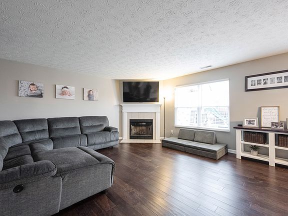 Welcome home to the Bristols! 4 bedrooms, 2.5 baths, with loft and fantastic fenced backyard! Inviting curb appeal with brick and a covered porch complete with a custom swing to cozy up with a good book! Open the door to Engineered Hardwoods flowing throughout the main floor. Home office tucked off the foyer, great room with cozy wood burning fireplace, open to the dining area and kitchen. Kitchen with white cabinets, stainless steel appliances, complete with center island and pantry. Upstairs you will find an abundance of space with 4 bedrooms, walk in closets, a loft, generous sized secondary full bath. Loft provides a great place for a rec room, playroom, etc... Owners Suite features vaulted ceilings, ensuite bath, with huge shower, updated tile floors, dual sink vanity, and two walk in closets! Step outside into the fully fenced backyard and picture yourself enjoying your patio this spring! Thoughtfully placed trees for privacy when in bloom, this backyard is just waiting for your next cookout! Garage features plenty of space with some built in storage. Neighborhood amenities include: Pool, Park, Playground. Wonderful location within Fishers, all within Award Winning HSE schools! Don't miss this home!