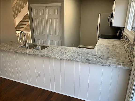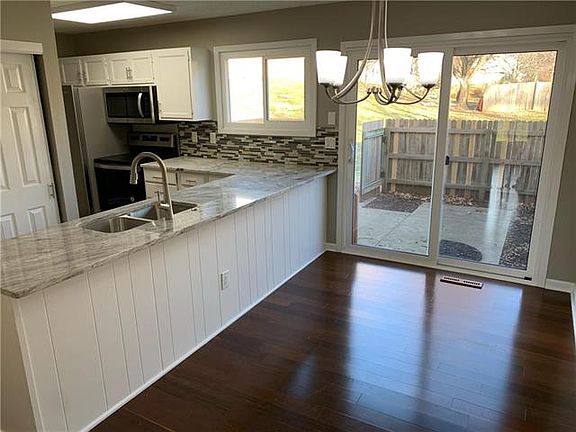 Beautifully updated 2 br, 1.5 bath townhouse in Quivira Falls. Laminate flooring throughout main floor living room and eat-in kitchen; sliding door leads to private patio. Kitchen has all new granite countertops and appliances. Upstairs are two spacious bedrooms, one with a balcony overlooking Quivira Falls; plus new carpet on stairs and in bedrooms. The full bath has been completely updated; new tile, vanity and shower over tub. Basement is finished with laminate flooring. New paint throughout the home.