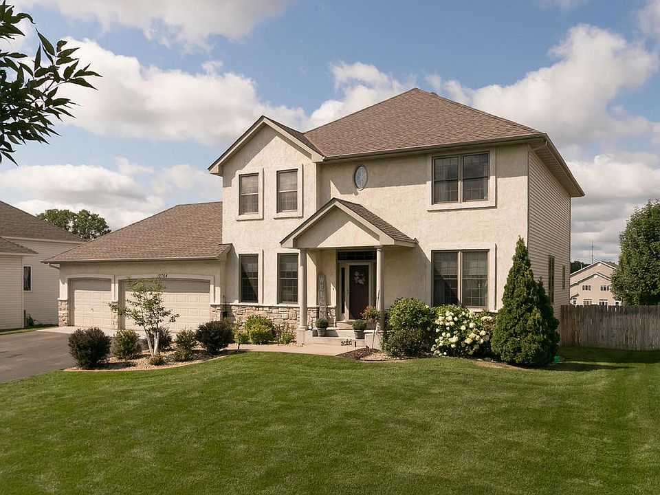Beautiful two story with over 4000 sq ft finished, 4 bdrms up & upper laundry. Master suite with two walk in closets and private bath with whirlpool tub & separate shower. Entire home redone in 2017, all new flooring and paint from top to bottom, wood flooring throughout main level, all new lighting, new appliances. Brand new finished walkout lower level very nicely done with heated floors, fireplace, walk up bar area, 3/4 bath with walk in tile shower. Gorgeous fenced in yard. A must see!