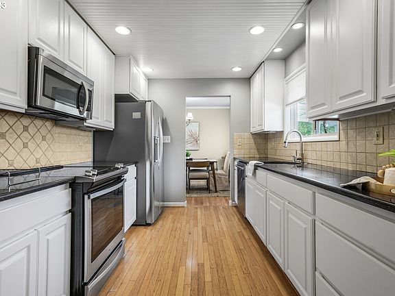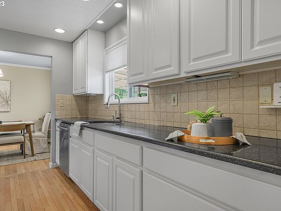 Stunning ranch-style home in the desirable Cedar Hills neighborhood! Charming landscaping enhances the already impressive curb appeal. Be greeted by a bright and inviting living room, with a lovely bay window that floods the space with natural light. The adjacent dining area features a trendy barn door that opens to the kitchen. The kitchen is equipped with stainless steel appliances, beautiful cabinetry, and an abundance of counter space. A delightful bonus room provides the perfect space for a home office or playroom. Step outside onto the covered patio, offering a great spot to relax and enjoy the outdoors. This home offers three spacious bedrooms, providing ample space for your family or guests. The two full bathrooms are tastefully designed with modern fixtures and finishes, providing comfort and convenience. The fenced backyard has a generously sized covered patio, ideal for hosting barbecues or gatherings with friends and family. Mature trees provide shade during the hot summer months, and the raised garden beds are ready for your own vegetables. The location is great, as this home is conveniently situated near Commonwealth Lake Park and Tualatin Hills Nature Park, offering endless opportunities for outdoor activities and recreation. Enjoy easy access to various dining and shopping options, with highways 26 and 217 nearby. Short 5-minute drive to Nike World Headquarters and a 10-minute drive to Intel. Commuting to various destinations is a breeze.