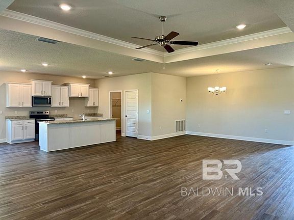 Check out our newest Destin Plan in the popular Fairhope Falls West neighborhood. You'll have plenty of room to comfortably accommodate friends and family within the 2,304 sq ft, open concept, split floorplan that includes 4 bedrooms, 3 bathrooms, a large 3-sided back, covered patio and 3 car garage. This home is well appointed with EVP flooring throughout, recessed ceilings with crown molding accents in the living room and primary bedroom with ceiling fans. The chef's kitchen features soft close, painted shaker style cabinetry finished with designer satin nickel hardware. The large, granite counter, center island with the single bowl, undermount, stainless steel sink makes food prep and clean up a breeze. It also provides plenty of counter space for a breakfast bar and casual dining. The covered patio provides an additional gathering space to enjoy the outdoors and/or watch a football game. Enjoy peace of mind knowing your new home was built to Gold FORTIFIED Home™ certification, for savings on homeowner’s insurance (see Sales Representative for details.) This home will receive a one-year warranty from D.R. Horton and a ten-year structural warranty through RWC. It also features our Home is Connected Smart Home Technology. Schedule you tour to find your new home in Fairhope Falls today! Fairhope Falls is a popular community with desirable amenities including 2 pools, a walking trail, Fish River access for paddle boarding or kayaking, 2 playgrounds, multiple stocked ponds and is located on Hwy 104 and Langford Road in Fairhope. The community is close to schools, shopping centers, restaurants, golf courses and local attractions. Buyer to verify all information during due diligence. Estimated completion of May 2025!