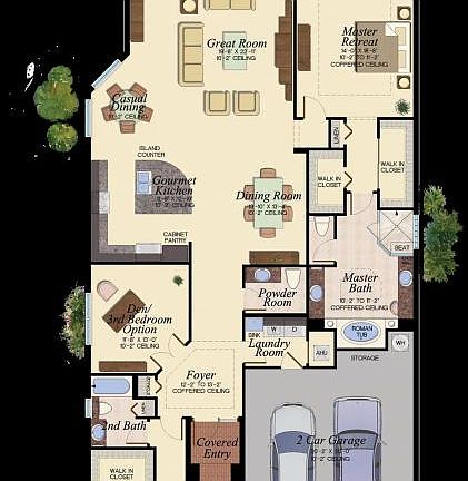 Valencia Bay, Lot 10 - Builder new construction quick delivery home. April-March delivery. Chef's kitchen with stainless steel appliances, 42'' cabinets, casual dining area, snack bar and high hat lighting. Great room has an oversized slider that leads to the screened patio. The master retreat boasts a coffer ceiling, his and hers walk in closets, dual sinks, garden tub and a walk in shower. The 2nd bedroom has a walk in closet and en-suite bath. The screened patio has a serene lake view. Valencia Bay is a brand new community with 8 acre waterfront recreation center that includes a 33,000 sq-ft clubhouse, grand ballroom, coffee bar, cocktail bar, catering kitchen, fitness center, resort style pool, resistance pool tennis and many clubs and activities.