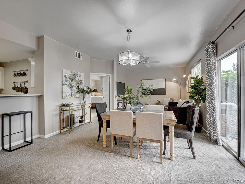 Don't miss this beautifully updated ground floor unit in the Ironstone community at Stroh Ranch. No stairs, lock and leave living, with newer carpet, paint, light fixtures plus all-new resurfaced counters this condo is ready to go. Large living and dining spaces, coupled with tall ceilings create a very open-concept entertaining space. Large primary bedroom with walk-in closet, and soaking tub. The second bedroom has a large walk-in closet as well with a large guest bathroom. The laundry room off the kitchen provides tons more storage space. Ironstone is a well-maintained condo complex with a beautiful pool and hot tub, clubhouse, sand volleyball, and fitness center. Enjoy the outdoors from your private covered patio. Lots of off-street parking as well as street parking just outside the door! Convenient location with access to E-470, Parker Road, and public transportation as well as close to greenbelts, paths, and Cherry Creek Trail. Walking distance to King Soopers, Parker Pour House, several pizzerias, sushi and taco shops.