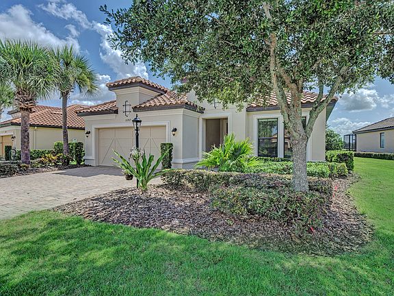 Welcome to this amazing spacious and bright Lazio model 3 bedroom, 3 bath, plus den, home. Not only do you have beautiful resort-style surroundings but this home comes with many upgrades and an outdoor living area that is bar to none! With over 1000SF of outdoor living you will enjoy the luxury spa/sitting area and top of the line outdoor kitchen w/hood AND all situated on a serene lake view. This model features a oversized gourmet kitchen with oversized island with pull out drawers/shelves, granite, stainless steel appliances, built-in wall oven and custom pantry. Kitchen opens up to the great room with 2 separate sliding glass doors leading to your extended lanai/kitchen/spa area. Great room has accented wall and mirror with tray ceilings and crown moldings. Master suite offers custom closets, dual sinks and large walk-in shower. Exterior recently painted, extended driveway, and owner has PAID OFF CDD! This home has all the bells/whistles and one of the best lots in the community. Why wait to build when you can call this beauty home! Don't miss this one - it's special including the fabulous resort-style amenities with an amazing Wellness Center, state of the art gym, championship golf course, tennis, pickleball, bocce, heated lagoon-style pool and spa, resistance pool, fire pits, Tiki Bar and the grand opening next year of the new Culinary Center! Centrally located near I-75, LWR Main Street, UTC Mall, restaurants, shopping and so much more! NON-GOLF LOT.