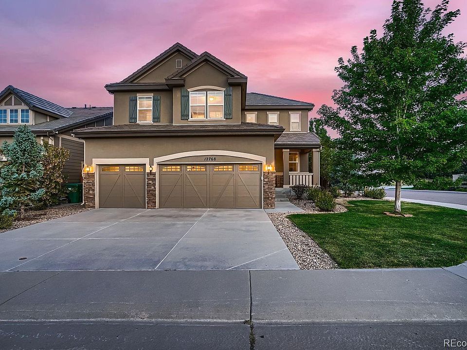 Huge price reduction from $849k to $809k--Location, Location, Location! Meridian subdivision, minutes from I-25, E-470, light rail, DTC, Park Meadows Mall, Sky Ridge Hospital, Lone Tree, and Top-Rated Douglas County schools, Highlands Ranch Highschool.......... Situated on a corner lot, you'll enjoy the privacy of a concrete soundproof wall in your backyard and hundreds of acres of open space, with no neighbors behind Move-In ready! gorgeous Richmond two-story home, concrete roofing, boasts nearly 4,500 total square feet. 5 bedrooms, 3 bathrooms, an enormous loft, upstairs Primary bedroom on one side and guest bedrooms on the other side for added privacy . Home is Surrounded by mature trees, provides a serene and peaceful atmosphere. Upstairs, savor breathtaking mountain views that will leave you in awe. For added convenience, a school bus stop is located right in front of your property. Inside, you'll find a beautifully maintained home with high-end finishes throughout. The carpeted basement offers ample space for entertaining or relaxing. and the 5th bedroom on the main level with a private bath, use as a guest suite or in-law suite!...... 3-car garage, a large corner lot, an east-facing private yard with brand new artificial turf maintenance free...... It is a West-facing driveway for excellent snow melt!!! Upon entering, you'll be greeted by stunning engineered hardwood floors throughout, high ceilings, a formal dining room, a family room with a fireplace, and a gourmet kitchen featuring elegant lighting and design, double ovens, granite countertops, and ample cabinetry, it is a chef's dream.! Don't miss this incredible opportunity to make this beautiful home yours! Act fast, as this exceptional property won't last long!