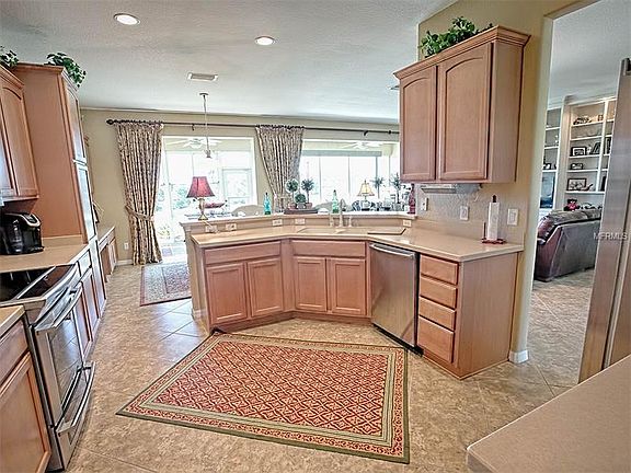 FOREVER A VIEW! PANORAMIC GOLF COURSE VIEW AND WATER! PREMIUM LOT in Hampton Hills. 3 BEDROOM Hanover with a 10x32 FLORIDA ROOM open to home, glassed in and under heat and air for a total of 2,278 sf of living space. Tile on diagonal, Newer STAINLESS APPLIANCES, over sized cabinets w/ pull-outs, extended cabinetry in breakfast room, Formal Dining Room, spacious great room. KING-SIZED MASTER BEDROOM with updated Master Bathroom with Roman Shower, double raised sink & Designer Walk-In Closet. Hunter Douglas blinds, 16 x 18 Patio overlooking fabulous views.ROOM FOR A POOL, SHARED WELL (Great savings on water) for Irrigation, 2 CAR GARAGE PLUS A GOLF CART GARAGE. Large inside Laundry Room with folding area and cabinets. HVAC REPLACED 3 YEARS AGO! DESIGNER GLASS double door entrance, refrigerator in garage remains. Metal Cabinets in Garage excluded.
