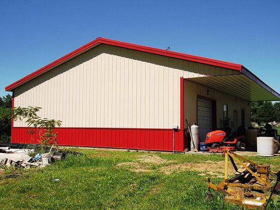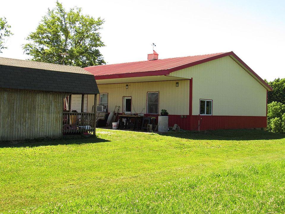 Convenient location for this 14.84 acres of land w/ unfinished pole bldg w/ plans for barndominium-style home w/ electric, water, septic & cvrd patio across front of building. Plumbing installed but not complete. Inside is partially started w/ some interior walls, full bth & pipes run for heated flooring. The rest is ready for new owner to complete to their own style. Room for gardening. Stocked pond needs some work; Massy Ferguson tractor & bush hog included.