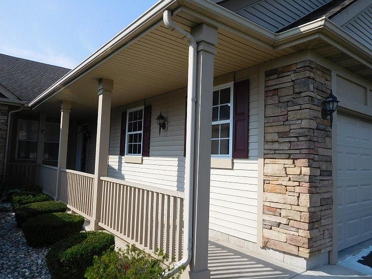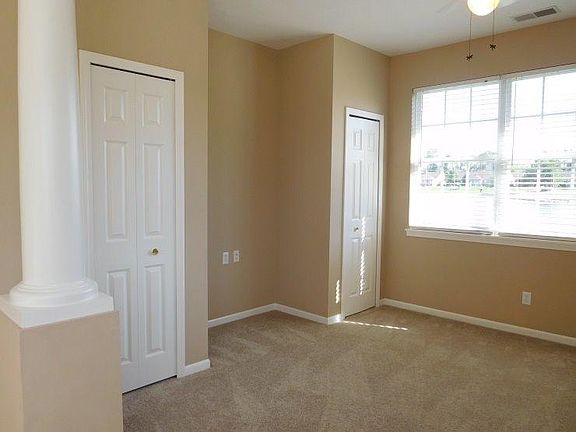 This beautifully appointed ranch style townhome, with view of the pond, has so much to offer! Open concept; Light, bright neutral decor throughout. Home features spacious Living Room/Dining Room combination; Large, fully equipped eat-in Kitchen; Den or possible third bedroom; Master Bedroom with separate bath; and second Bedroom and bath. The extra large patio offers a great view of the water and is ideal for seasonal entertaining. There is great emphasis to detail throughout. Please note the many upgrades, such as, custom ceramic tile with mosaic accents throughout; upgraded quality carpeting; white accent pillars invite you to the den offering serene views of the beautiful back yard pond; wonderful light fixtures and switches with dimmer controls; custom window treatments; drywall in garage; the list just goes on and on. This home could not be reproduced for this price! And don't miss the pool and work out center just a few steps away at the Club House.