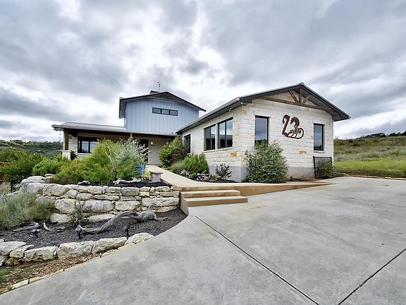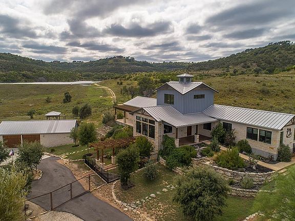 Zephyr Valley Ranch is situated on 13.18 acres in a 2000 acre wildlife preserve shared by 148 landowners. Home has 60% Sisterdale cut Native rock that wraps home on entire front & sides plus rear wainscoting; hardiplank on Upper rear exterior, second story, soffit & fascia. Matching oversized detached 2 car garage with additional two rooms that house dry pantry, water purification system and man cave/game room with collectors addition Brunswick pool table. Behind garage opens to beautiful hill country view with three large hills that screen for privacy & noise. 12 acre stocked lake, seasonal creek, outdoor kitchen, hot tub, and 44k gallon underground cistern also behind garage. Young orchard planted at end of garage. Sand Creek wooden Horse barn includes 12’ x 36’ workshop, with storage above; aisle is 14’H x 12’W x 48’ L and has 2 - 12’ x 12’ lofts. 12’ x 12’ tack/feed room, day lighted sink, hot water tank, 2 - 12’ x 12’ stalls & 1 - 12’ x 24’ foaling stall with equivalent immediate stalls. Arena and approximately 48’ x 48’ fenced grass area in front of barn. Attached HEB house with side yard. Asphalt driveway, fenced with 3 sets of gates at strategic points. 3 Trane systems for zoned heating/cooling All electric 250 gallon propane tank for outdoor kitchen & fire pit Hybrid water heater Soaking tub in master ADA specifications Terraced 2 arbors to break light Wrought iron fencing around courtyard out from walkout basement