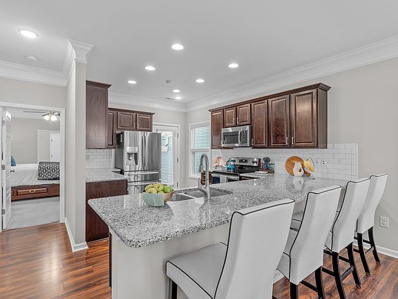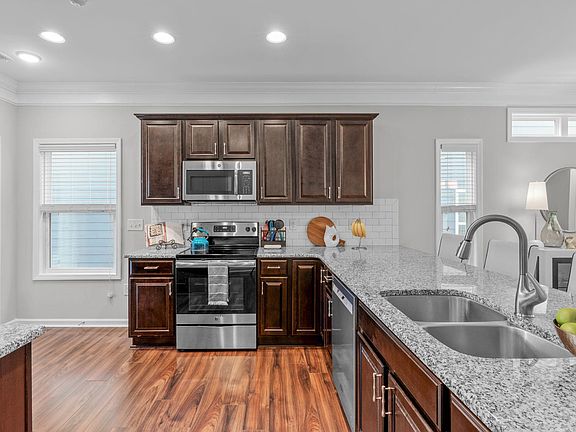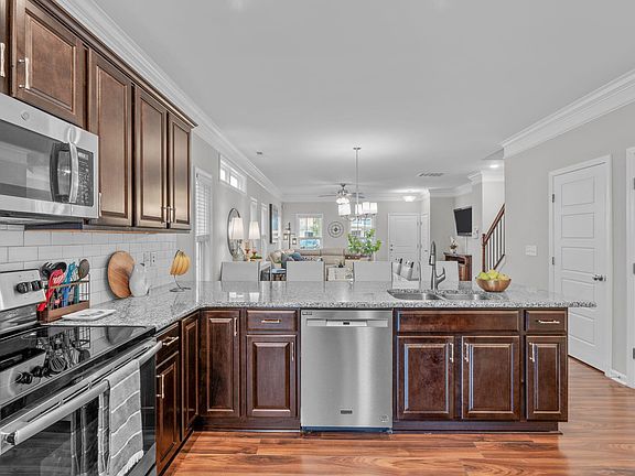 This stunning 4-bedroom, 3-bath home is better than new and brimming with Southern charm. The double rocking chair balcony and welcoming front porches set the stage for easy living. Inside, the open-concept design is ideal for gathering, with a spacious kitchen and plenty of counter space for hosting. The first-floor primary suite is a private retreat, featuring a spa-like bathroom with dual vanities, a roomy walk-in shower, and a separate water closet for extra comfort.Upstairs, a cozy loft and two generously sized bedrooms offer plenty of space for everyone. The versatile third-floor 4th bedroom can be your bonus room, home office, or whatever you dream up. In Sweetwater, you'll enjoy resort-like amenities including a clubhouse, gym, pool, playgrounds, and a dog park. Plus, the greenway trail connects you to the scenic Tobacco Trail for outdoor adventures. With 45 acres of retail and entertainment at your doorstep, you're never far from the action. And, you're just minutes away from RDU, RTP, and Jordan Lake.