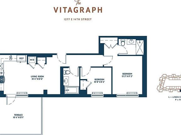 *Welcome to The Vitagraph, Midwood's Premier Rental Destination* *Spacious penthouse level two bedroom with a large, southern facing terrace & in-unit laundry.* Unit Features: Washer/Dryer in-unit Chef's kitchens with double sinks Private outdoor space in select units Hardwood Floors Caesarstone countertops Latch smart access system at all apartment entry doors Building Amenities: Part-time Doorman Live-in Resident Manager Video Intercom System Gym Business Center Lounge Children's Playroom Landscaped Courtyard Common Roofdeck Parking Garage Amazon Lockers Storage Bike Storage *Photos are from the model units and may not match the exact apartment. Please consult the floorplan for the exact layout.