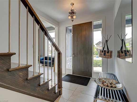 Stunning 4 Bed 4 Bath home located in desirable Northwest London. Highlights include main floor laundry, a formal dining room, large bright windows, Tiled flooring throughout main floor and upper hall, large open concept family room with gas fireplace, Beautiful white kitchen with an island, quartz counter tops and built in bar. Second level offers 4 spacious bedrooms, 4 piece main bath, inviting master bedroom with a large walk in closet and deluxe ensuite. Finished lower level is complete with office, games room and theatre set up. Relax and enjoy a large covered rear deck perfect for entertaining. Finally the ultimate garage set up accented with a concrete driveway.