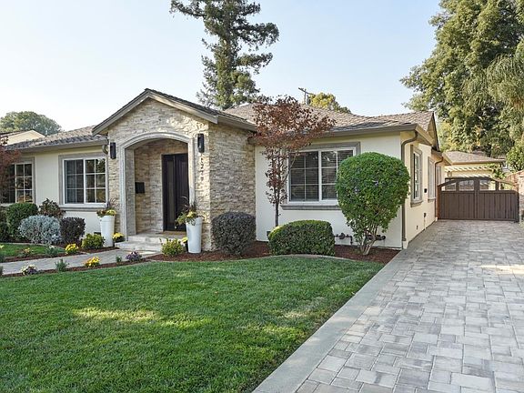 Just imagine after a delicious dinner al fresco you and your guest can sit around the sunken fire pit, roast marshmallows, converse and lounge while sipping your favorite glass of wine.The serene atmosphere with blooming flowers and fruit trees accompanied with the bubbling fountain in the background will melt away Silicon Valley stress. This one of a kind single story home boast owned solar panels, a custom designed fire pit and fountain. It has hard wood floors throughout, Peruvian travertine tile, LED lights, and a gourmet kitchen with Jenn Air and Bosch appliances, additionally, it has double pane windows, AC with Nest control, an alarm system and automated gate. All this can be yours, located within walking distance to parks, schools, and downtown Willow Glen's fine dining, fitness studios and shopping.