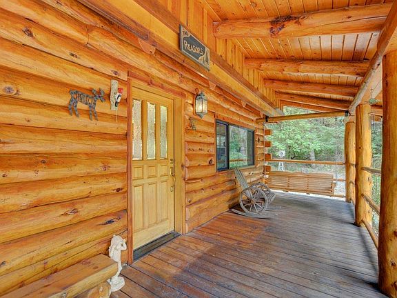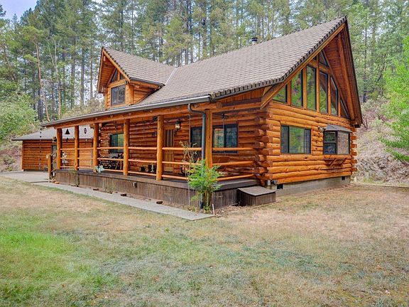 Quiet, peaceful and surrounded by nature. This 16.97 acre property boast remote entry security gate, spacious 1,500 SF Log Home which shows pride of ownership. Home features 2 Bedrooms, 2 Baths and a Loft. 17 FT ceiling, lots of windows with views from every window. Covered front porch and large deck off of upstairs master bedroom and mud room next to the kitchen. Detached 2 car garage and 20 X 20 shop plus a storage shed. Spring fed pond, circular driveway and bordered by BLM Land. Located just minutes from Lake Selmac and the town of Selma. If you are looking for a quality built home and serenity this property has it all.