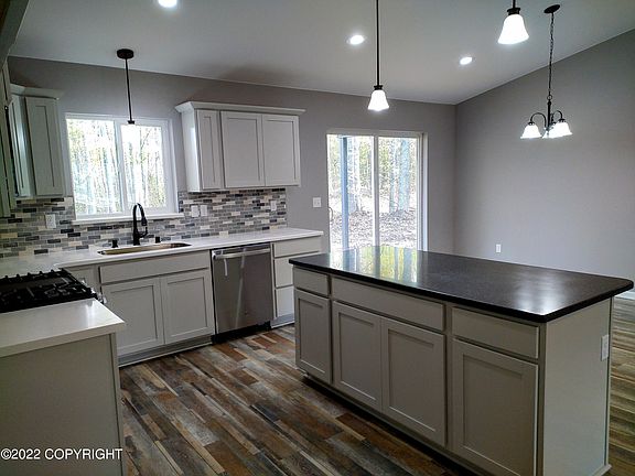 Price improvement on just Finished Brand New Construction! Very spacious open concept home with fireplace. 20' x 8' covered back deck and covered front porch. Huge master bedroom and bathroom with his and hers walk in closets. 3 car garage.5 course block foundation w/ crawl space. RV parking. Excellent easy commute between Palmer, Wasilla and Anchorage. 5 star energy rating. Move-in ready.