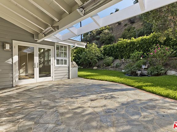 This magnificent Traditional residence offers the perfect blend of elegance, comfort, & functionality. The inviting living room features soaring ceilings, a wood-burning fireplace, & floor-to-ceiling windows providing great natural light. French doors open to a covered patio with built-in heaters, a serene grassy yard, built-in BBQ, & fountain. Making it ideal for outdoor entertaining & everyday relaxation. The updated chef's kitchen is thoughtfully designed with a center island, skylights, built-in breakfast nook with window seating, premium stainless-steel appliances, & abundant cabinet & pantry space. It seamlessly connects to the expansive family room & dining area, complete with a second fireplace, custom built-ins, & dual sets of French doors opening to the backyard, offering effortless indoor-outdoor flow. The main level includes three bedrooms, including a generous 2nd primary suite with high ceilings, a walk-in closet, direct access to the backyard, & a beautifully appointed en-suite bath with a walk-in shower. Two additional bedrooms share a well-designed hall bath with a separate tub & shower, along with a powder room for guests. Upstairs, you'll find two more spacious bedrooms, including the luxurious main primary suite with a fireplace, vaulted ceilings, an oversized walk-in closet, & a spa-like bath featuring a large shower, soaking tub, & double sinks. The additional upstairs bedroom also includes high ceilings, a walk-in closet, & its own full bath with scenic views of the Getty Center. Additional highlights include a direct-access garage with EV charger, generous storage, a separate laundry room, dual-zone HVAC, recessed lighting, 3 fireplaces, & beautifully refinished hardwood floors throughout. Perched in a tranquil, peaceful setting with hilltop views, this home offers a rare sense of privacy & serenity. Nature lovers will appreciate the hiking trails just outside the front door, while still being moments away from top-rated schools, local dining, shops, & all the best of Brentwood and the Westside. A truly exceptional offering. Rental term to be 13-months or more.