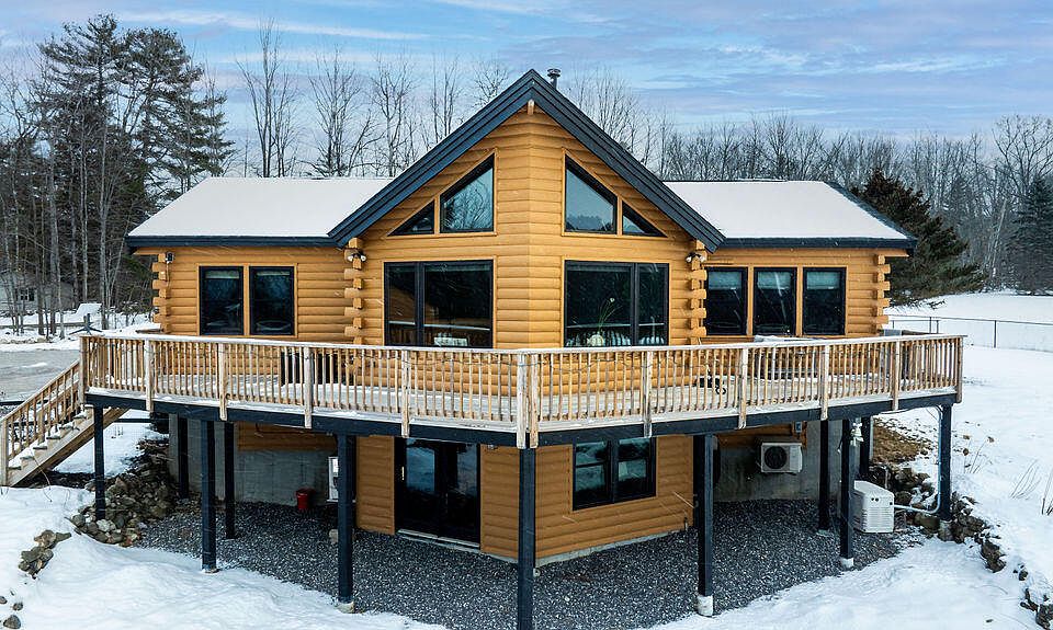 If you've been dreaming of a Maine escape that feels both grounded and grand, this mountain-view log home on 6+ open acres delivers: with a cocktail pool, 40-foot cabana, two primary suites, and views of Mt. Washington and Shawnee Peak.